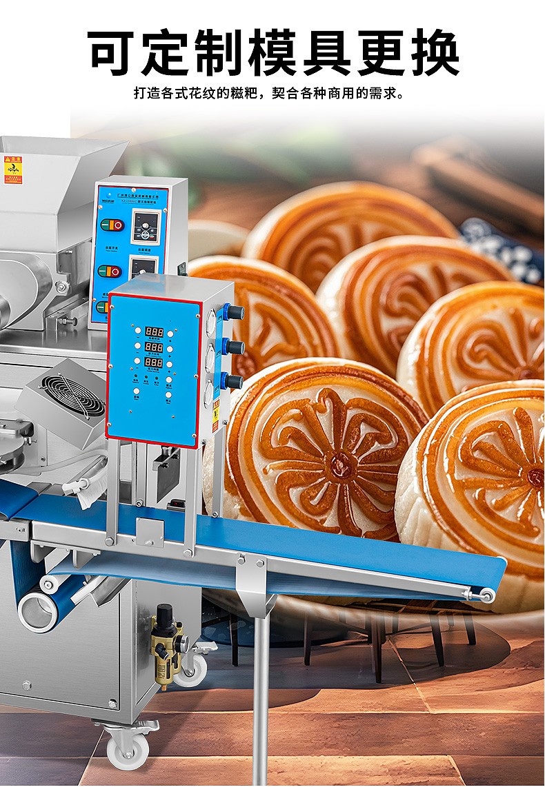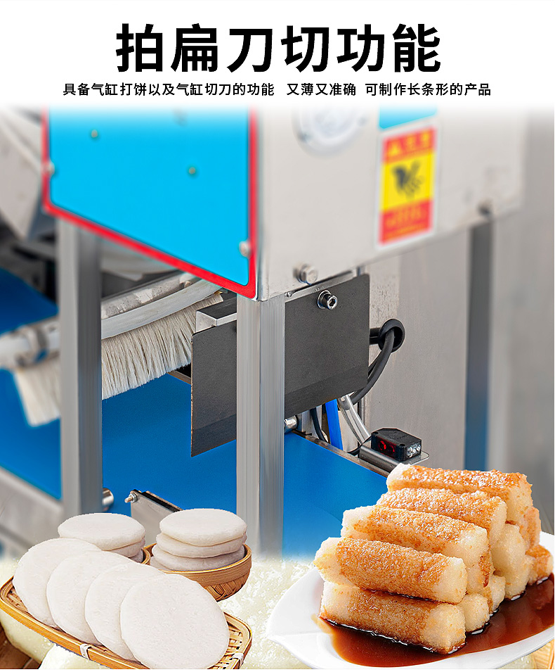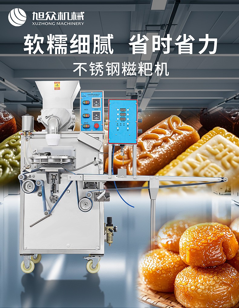 XZ-5000C糍粑機(jī),軟糯細(xì)膩、省時省力,不銹鋼糍粑機(jī)。智能控制面板,智能內(nèi)芯控制,可自由調(diào)節(jié)輸送,切刀和打餅的時間。拍扁刀切功能,具備氣缸打餅以及氣缸切刀的功能、又薄又準(zhǔn)確、可制作長條形的產(chǎn)品。