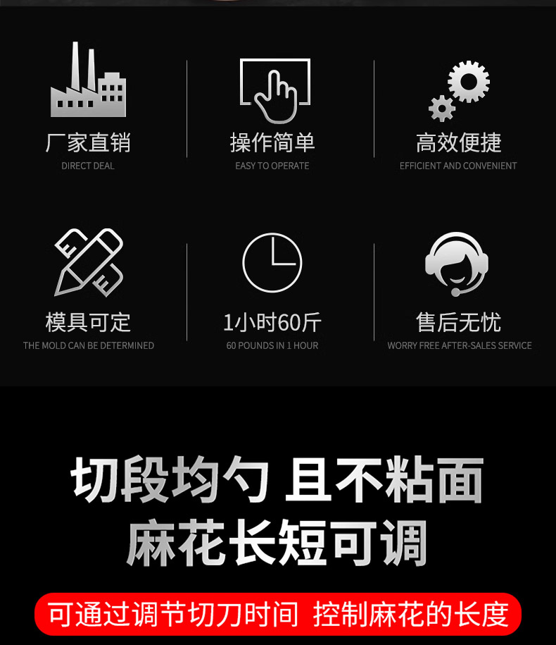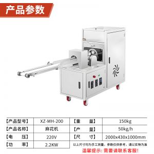 XZ-MH-200麻花機(jī),技術(shù)支持、贈(zèng)送配方、支持定制,1小時(shí)加工60斤麻花。切段均勺、且不粘面,麻花長(zhǎng)短可調(diào)??赏ㄟ^調(diào)節(jié)切刀時(shí)間、控制麻花的長(zhǎng)度。通過精確控制成型,確保每根麻花大小均勻,外觀一致,提高產(chǎn)品競(jìng)爭(zhēng)力。
