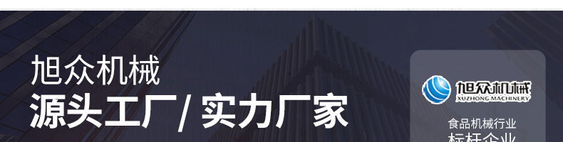 廣州旭眾食品機(jī)械有限公司是一家集科研開發(fā),生產(chǎn)設(shè)計(jì),營銷服務(wù)為一體的現(xiàn)代化生產(chǎn)企業(yè)?,F(xiàn)代化生產(chǎn)車間,精湛制造技術(shù),所產(chǎn)機(jī)械歷經(jīng)市場重重考驗(yàn),不斷贏得海內(nèi)外客戶的贊譽(yù)。