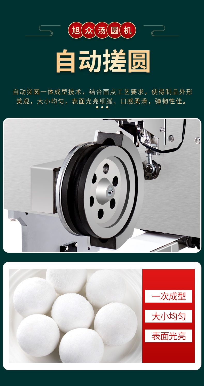 4000C湯圓機,多功能湯圓機,運行穩(wěn)定、時產量高、大小可調。制品多樣性生產各種大小規(guī)格不同的有餡湯圓,無餡湯圓、豆沙包、南瓜餅,芝麻球,地瓜丸,香芋丸,葉兒粑,青團,粘豆包等。