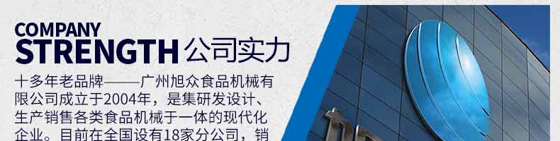 廣州旭眾食品機(jī)械有限公司是一家集科研開(kāi)發(fā),生產(chǎn)設(shè)計(jì),營(yíng)銷(xiāo)服務(wù)為一體的現(xiàn)代化生產(chǎn)企業(yè)?,F(xiàn)代化生產(chǎn)車(chē)間,精湛制造技術(shù),所產(chǎn)機(jī)械歷經(jīng)市場(chǎng)重重考驗(yàn),不斷贏得海內(nèi)外客戶(hù)的贊譽(yù)。